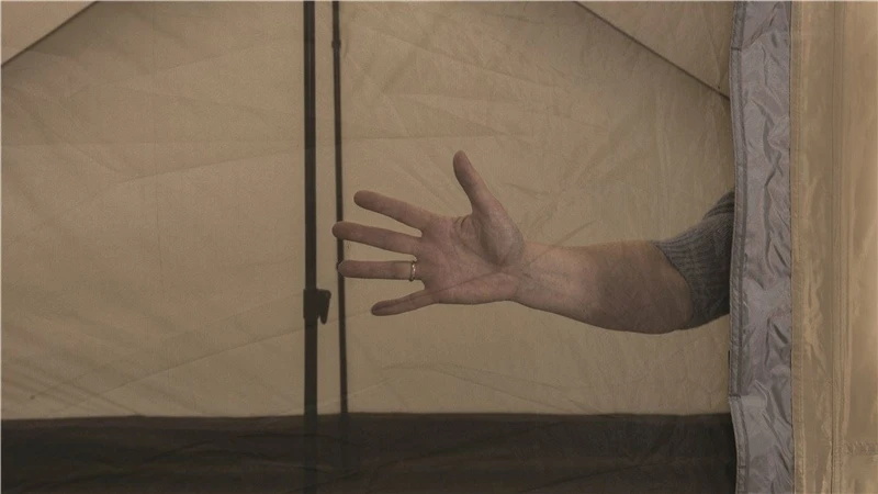 - Flap down or toggle up groundsheet in the door