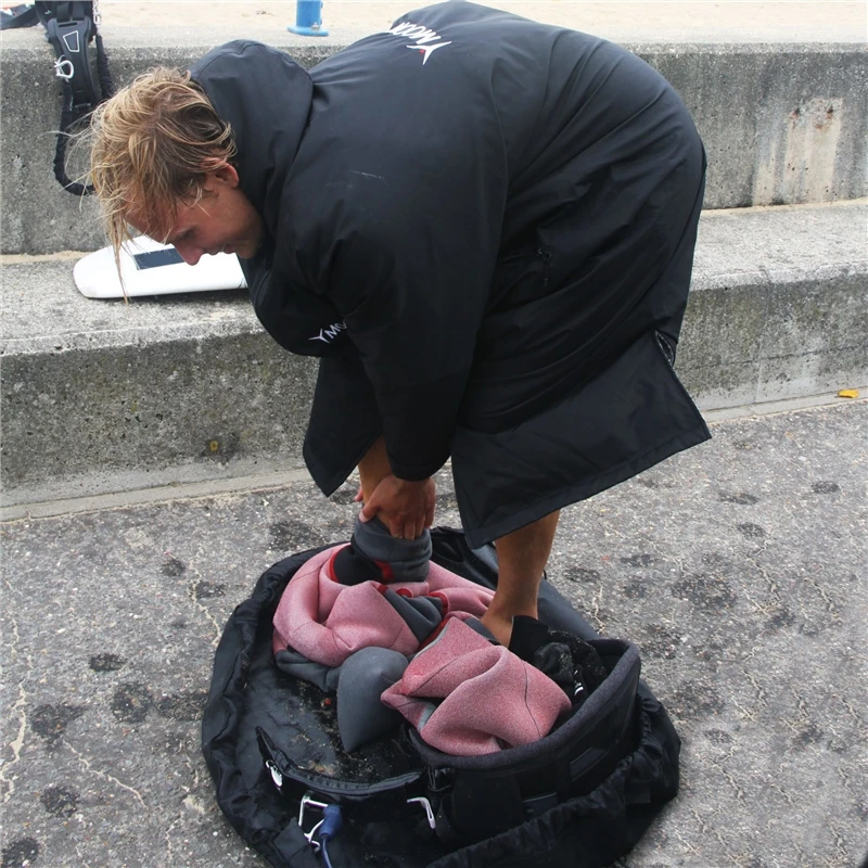 The simple idea was to create a product which could be used in dirty car parks to get changed on after surfing. Once you had changed you could leave all your wet gear in the bag.