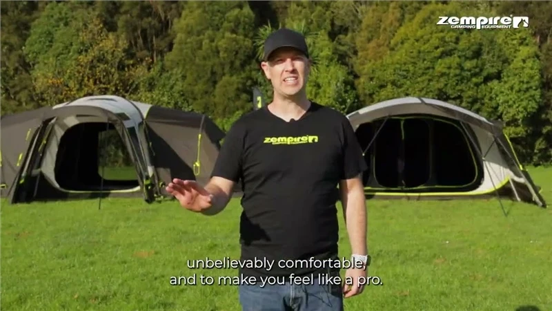 You’ll enjoy superior features, privacy and fast inflation with our new Zempire Pro II V2 Air Tent. The fully inflatable frame with a central cross structure provides increased stability and a generous living space with increased privacy via the two individual bedrooms. The front awning area can be attached to either an optional awning wall set to enclose, or an Aerobase shelter to provide a truly connected living space.